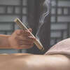 La moxibustion est une pratique de la médecine traditionnelle chinoise qui consiste à brûler de l'armoise (appelée moxa) sur des points spécifiques du corps. Cette technique est utilisée dans divers systèmes médicaux traditionnels d'Asie de l'Est, y compris en Chine, au Japon, en Corée, au Vietnam et en Mongolie.